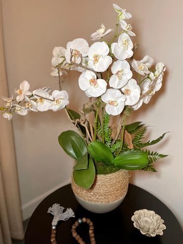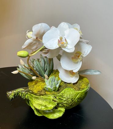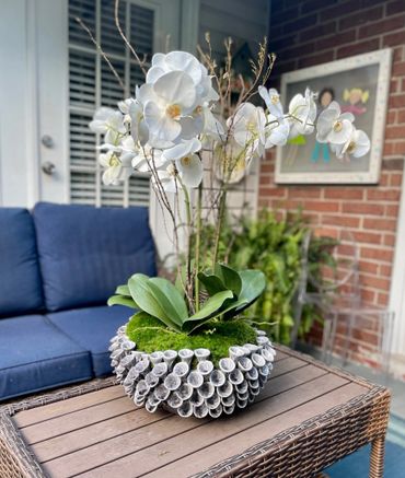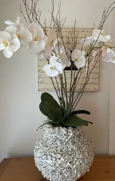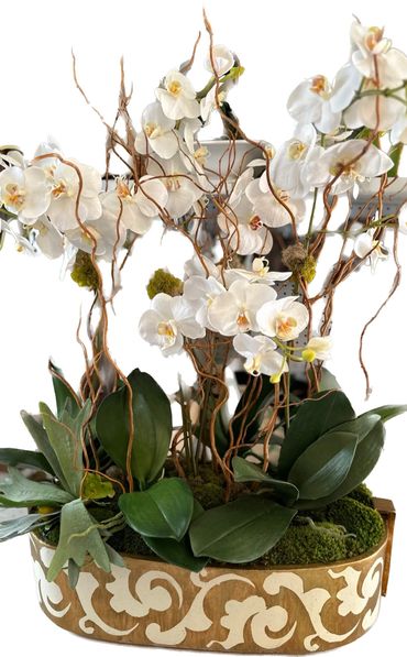 I create all original works from my stock. I also create pieces in clients own containers. I have many orchids and containers in my stock to choose from, in various colors and sizes. For custom compositions, I like to see your space before hand, either in person or in photos, to get a feel for the space and size.